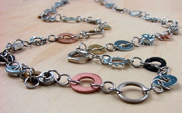 When most people go to the hardware store, they see everything they need to repaint a wall, fix a broken table or build a deck for the backyard. When Valerie goes to the hardware store, she sees dangling earrings, exotic bracelets and elegant necklaces. Once in her expert hands, mundane washers and L brackets become works of wearable art.